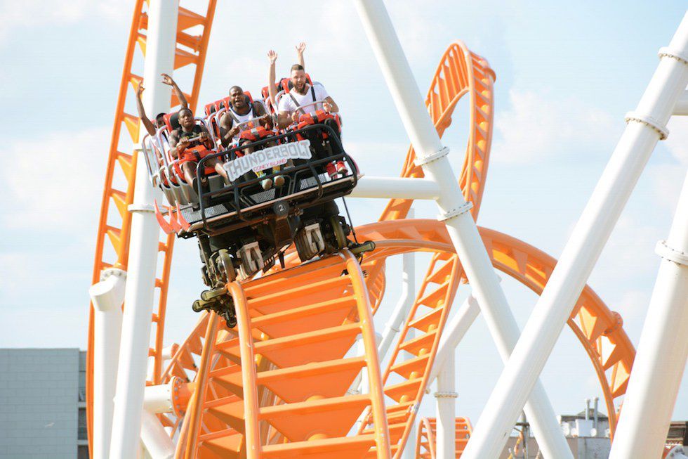 The Thunderbolt is an amazing thrill!! It begins with a 90-degree climb into the sky--and a subsequent 90-degree drop!! Then it goes through a giant loop and several spins at over 50 miles an hour. This coaster ride is not to be missed and definitely not to be forgotten!