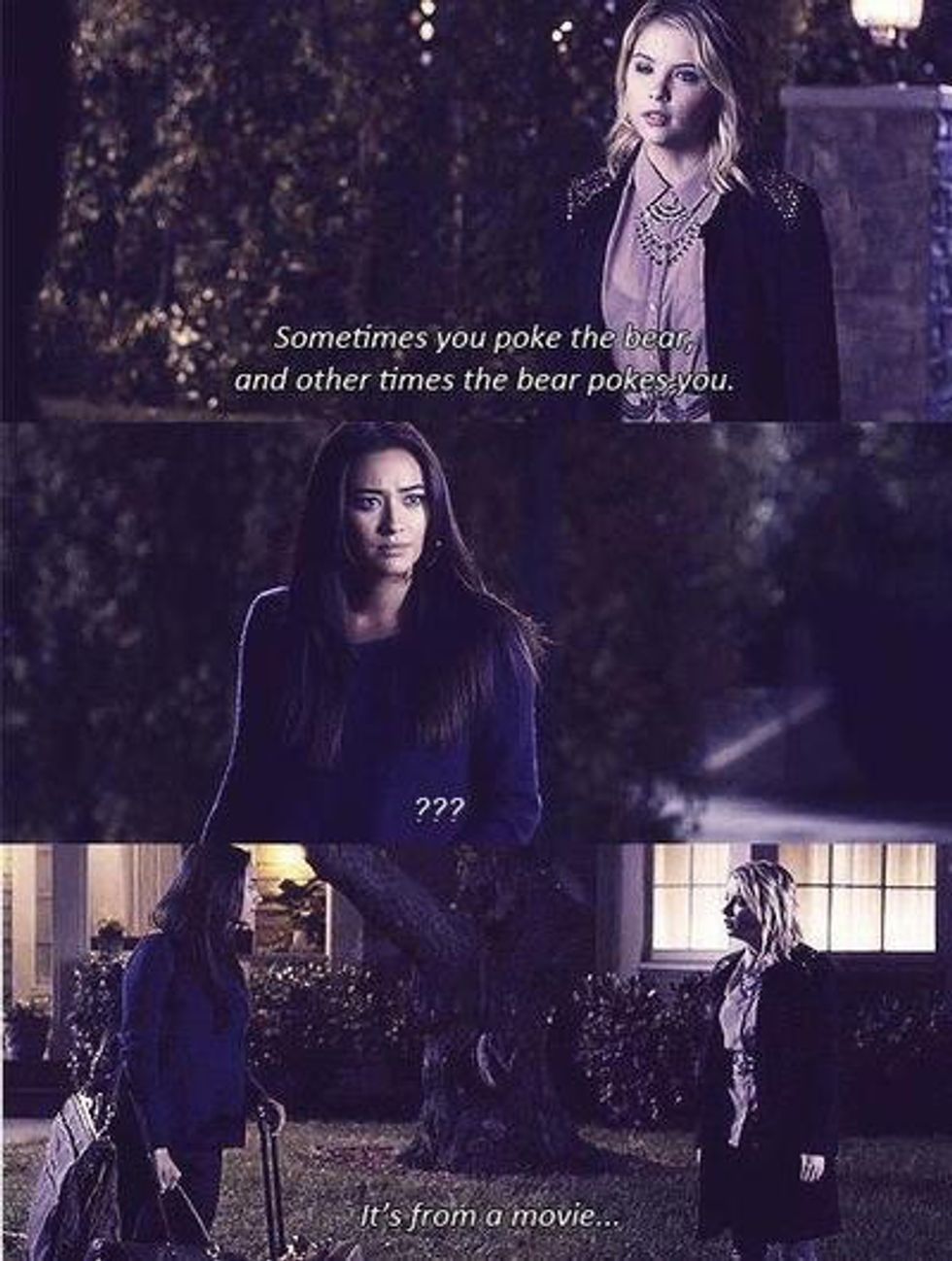 Here is a little appreciation post to Hanna Marin for easing the mood when I was about ready to jump out of my seat, and making statements that are so relatable to life it is almost as if I said it myself.