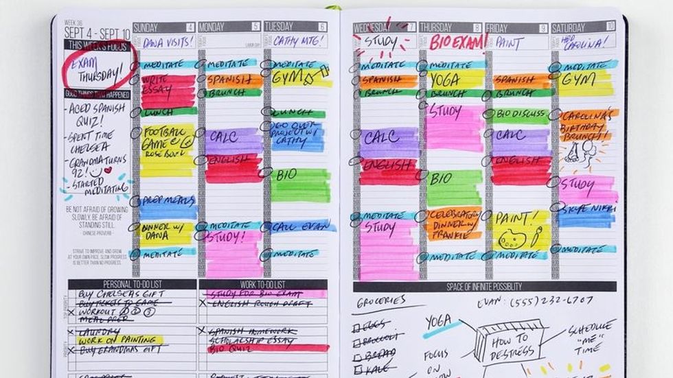 By doing this you'll get a visual of everything coming up and you can begin to map out the time you will need to study for each exam. I used to not be a big planner person, BUT BELIEVE ME, IT HELPS.