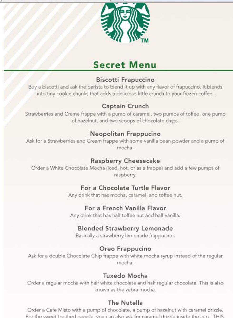 2. The “secret” menu (i.e. “secret” frappuccino menu) is not real.