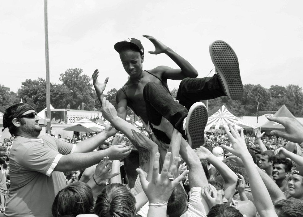 God bless those that help to ‘clear open’ a space for the pit to actually happen, and also those who serve as the barrier between the violence and the non-moshers. Mosh pits are kind of great, because everyone just kind of assumes a role, and assumes a defensive battle position, like, arms up, elbows out. They are also kind of scary because it can be really easy to fall down in them, and when everyone is running around shoving, it can be hard to get back up. I’ve been the victim of several black eyes and concussions from the wrath of the crowd surfers. One time, a girl straight up punched me in the face on the way to the front. I went to work with a black eye the next day, no big deal. Stay alive and survive!