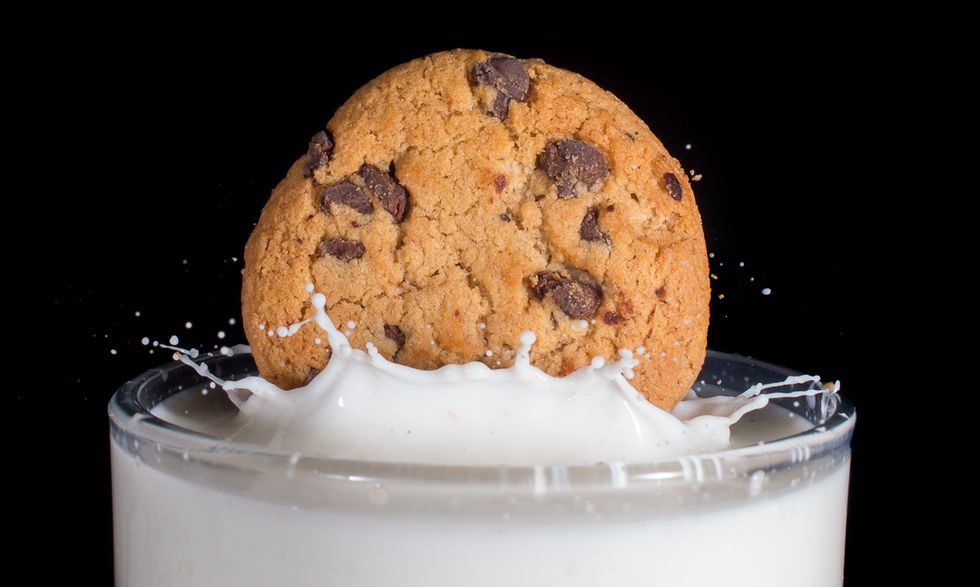Have you ever looked at such a perfect chocolate chip cookie that you thought you had to be dreaming? And you couldn't wait to get yourself a cool glasses of milk to dunk it in? Yeah, this is where this "dream" turns into a nightmare for me as the cookie scorches the roof of my mouth because I CAN'T HAVE MILK.