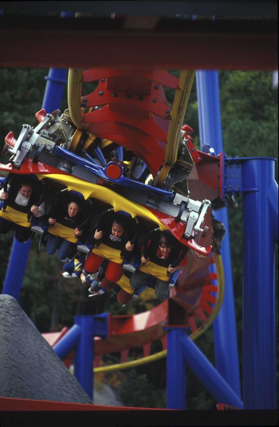Coming from the designers of the Raging Bull, SUPERMAN: Ultimate Flight and BATMAN: The Ride, manufacturer Bolliger & Mabillard brings you X Flight. They want you, X Flight recruits, to embark on a top-secret mission on the world’s fourth winged roller coaster. The coaster is suspended on each side of the track where the passengers are seated in pairs with their feet dangling. With no tracks above or below you, on your mission you fly at 55 miles per hour first launching up to a 120-foot hill which descends you into a dive drop, turning you 180 degrees and into an upside down position and transitioning you into a gravity-defying roll into a cloud of fog. Soon after more twists and turns, the coaster heads for the central tower at a 90-degree angle. Making sure you don’t crash, the coaster makes a last second vertical flip before you enter a keyhole opening returning safely from your mission.