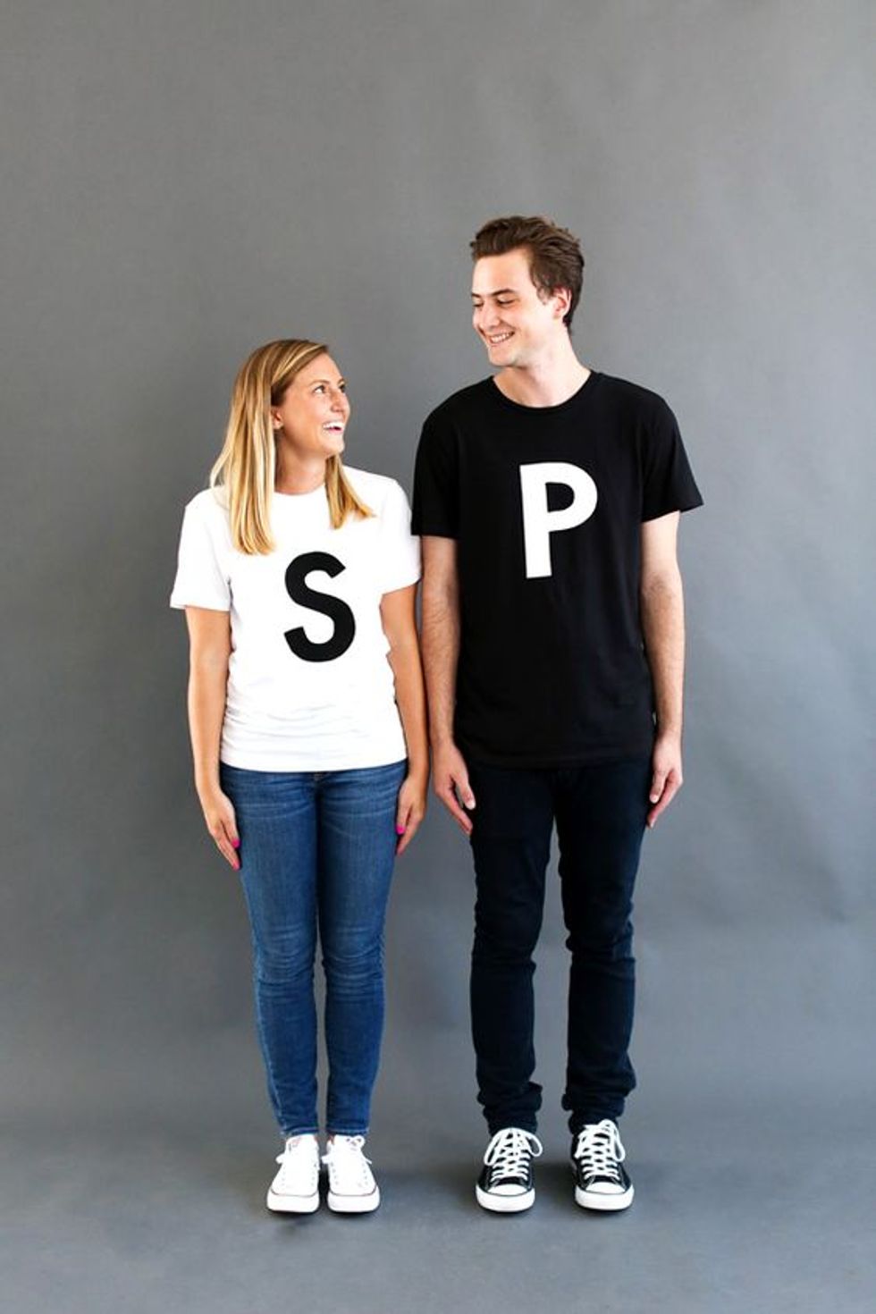 This costume is for all you last minute couples. It is by far the easier to make and still looks super awesome. You just need jeans, an S shirt, and a P shirt. And if you can't find the shirts then just print out the S and the P and tape it onto the shirts. And that is how you will become salt and pepper.