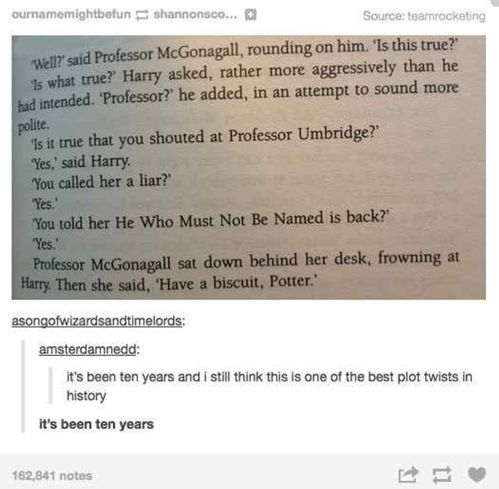 By far the best plot twist in history. McGonogall gets all the points if we're being honest.