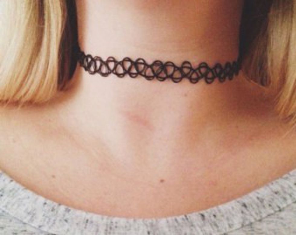 When I was growing up, I used to rock the choker every day. Looking back at pictures of me, I remember thinking my tattoo choker was the dorkiest thing. Well, here I am, 12 years later, wearing them again.