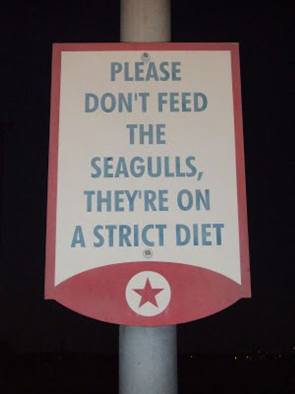 Unfortunately, from May-September, the seagulls are on a "strict diet" of Cheetos, Cheese Puffs and white bread from all of the tourists who think these pesky birds are cute. News flash: They are not cute. And if you keep feeding them, they will just steal your food right out of your hand.