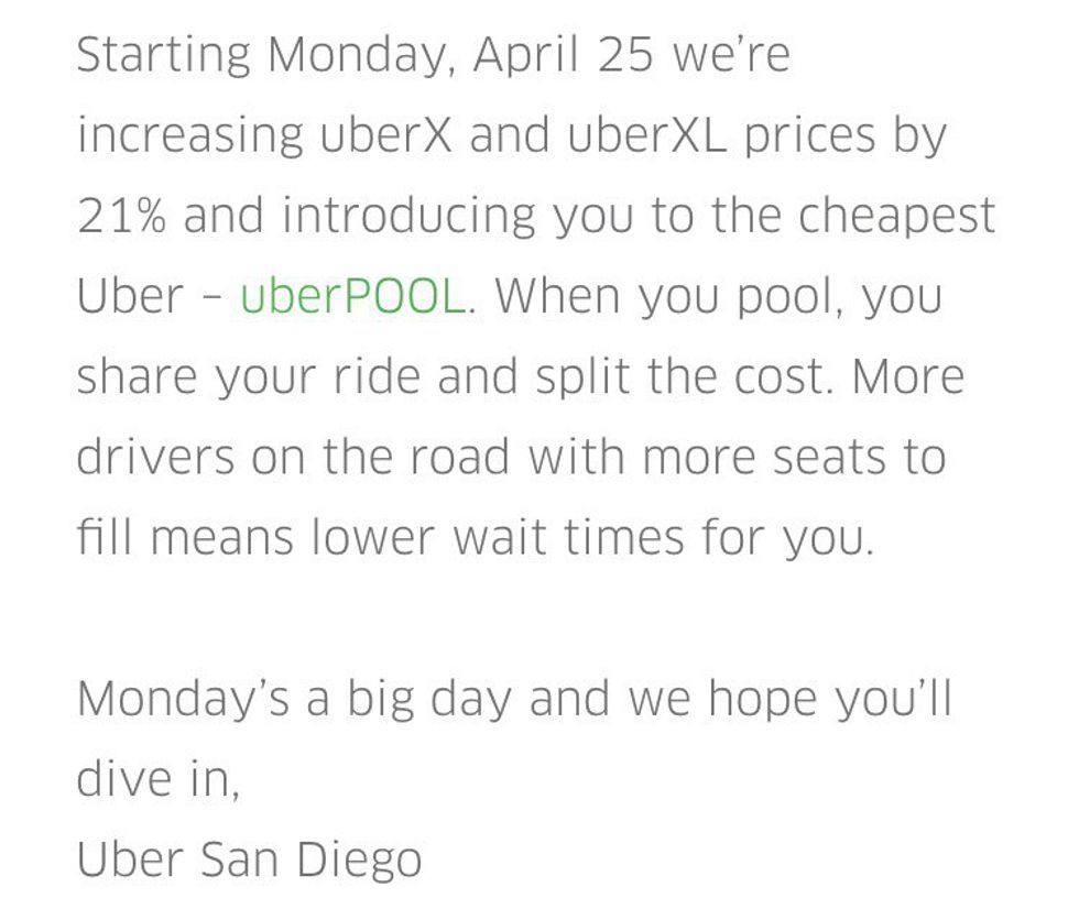 So with the price increase of 21 percent, my first thought was well I better start being nicer to people so they can drive me where I need to go because I definitely don’t want to be paying that much more for an Uber. Because let's be honest here, 21 percent might not seem like the biggest number out there, but it is definitely higher than I want to pay, and I don't think I'm alone in that