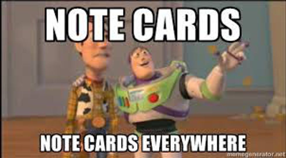 19) Notecards fill every crevice in your room and they never, EVER disappear
