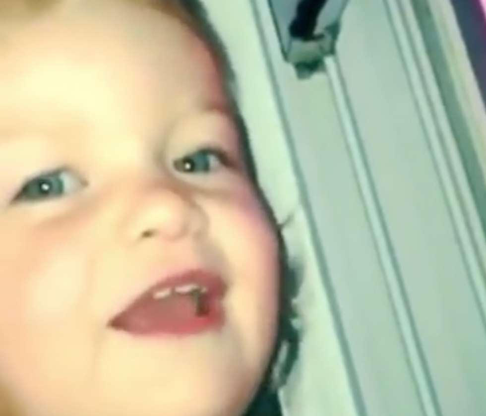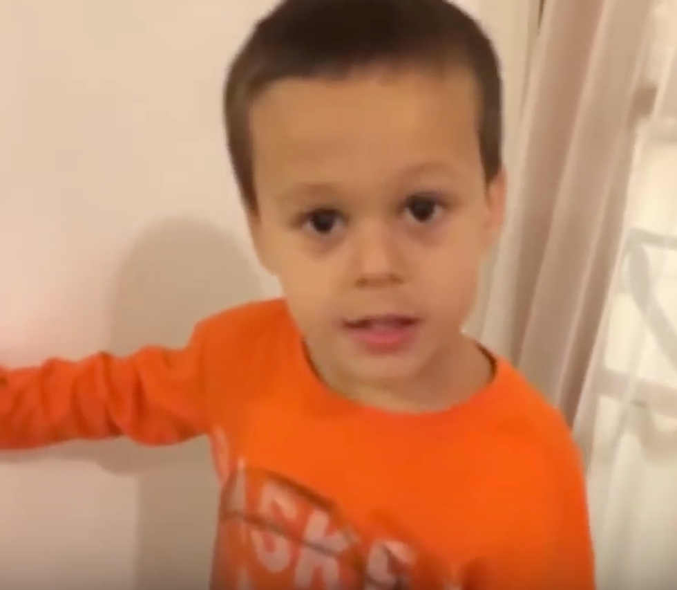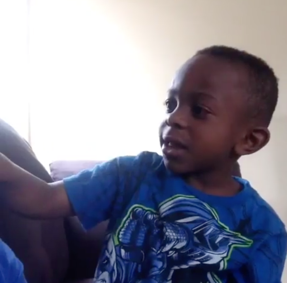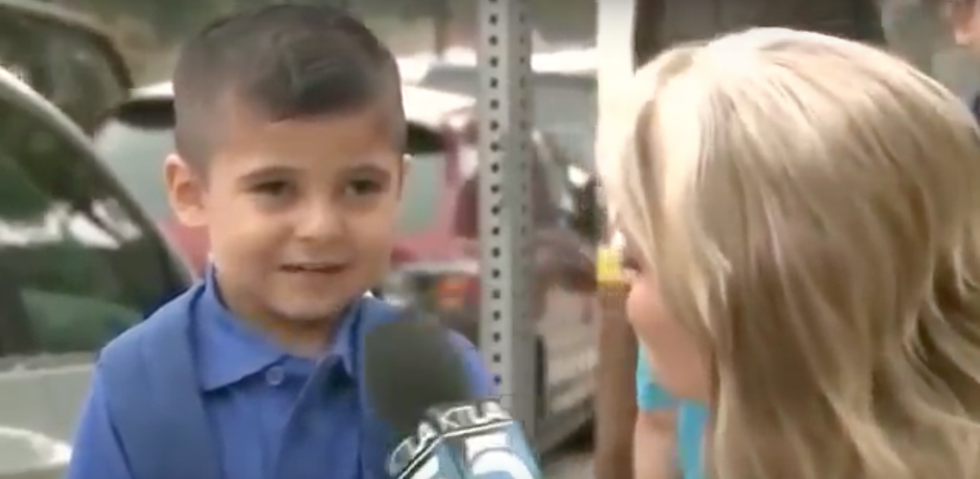 9. When asked if he misses his mom, how does this little boy react to the reporter's question?
