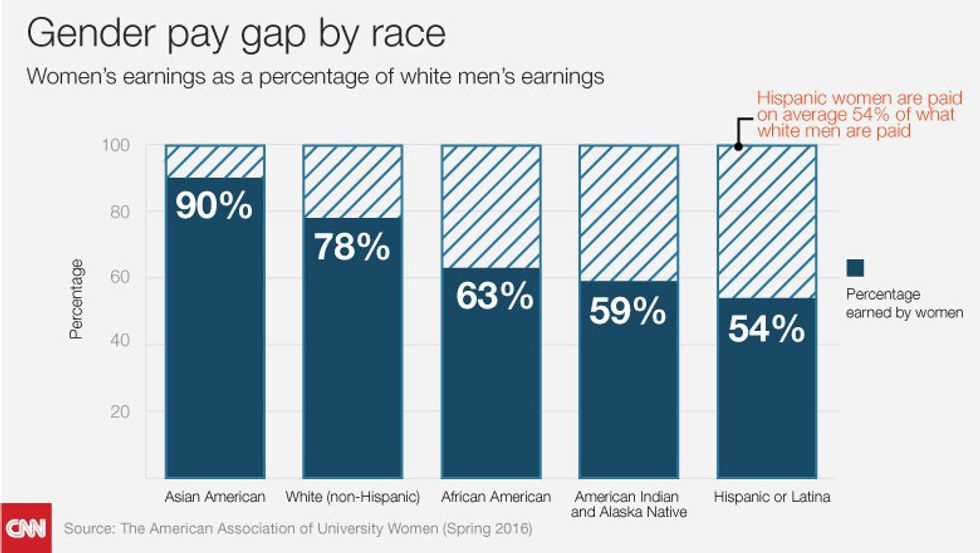 In general it's thought all women don't make as much as men. It's also believed they must all make the same amount as each other then, but this isn't true. Dana Ford of CNN provides charts showing this.
