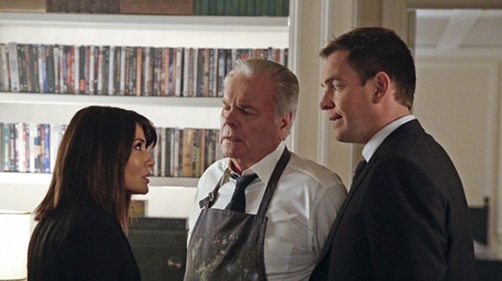 While DiNozzo was working, Sr. decided to cook a nice meal for his introductory meeting with Jr.'s girlfriend. As Jr. was opening the door, Sr. almost burned down the kitchen. Always make your own reservations to prevent fire disasters from occurring.