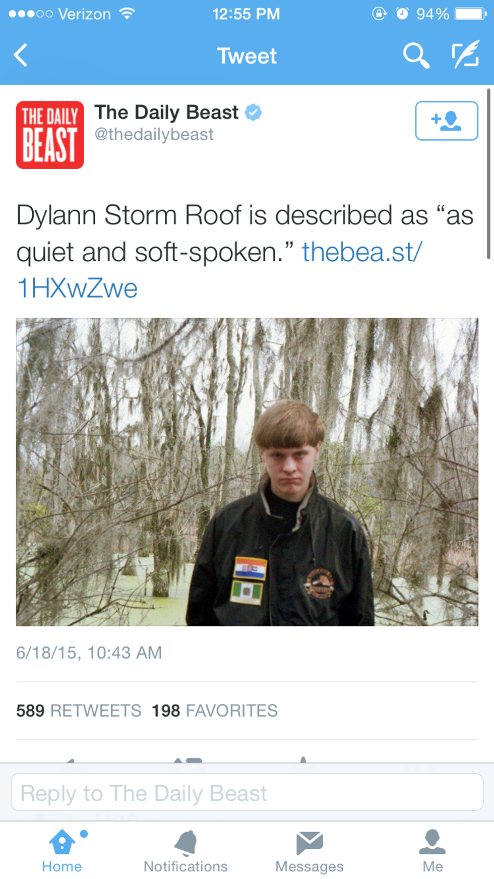 The takeaway from this case is why I wanted to write the article for The Odyssey in the first place. As college students, we’re the voice of the next generation in things like the criminal justice system, politics, the media, and social issues. It’s no longer just a “good thing” for us to form our own opinions about what’s happening in the world. It’s necessary. We are bombarded by the media in every corner of our lives. Being able to take in the messages that they’re sending and interpret them in a way that allows us to think for ourselves is vital. We cannot allow ourselves to continue to swallow the information that they spoon-feed us without thinking critically about it. That's how we let those like Roof get away with their crimes, even when they're within police custody: by not holding them accountable.