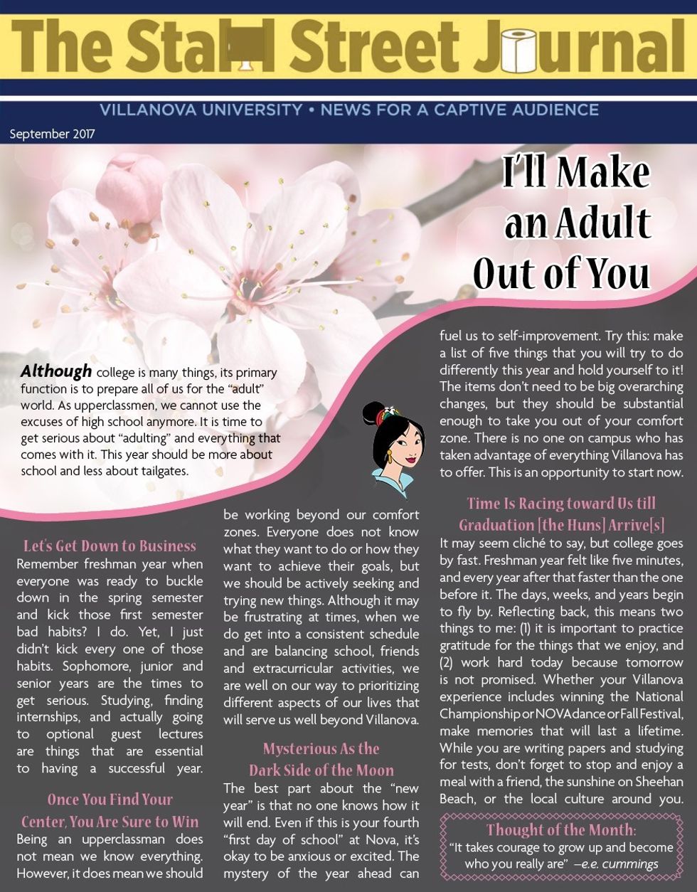 Okay, whoever came up with this name deserves an infinite amount of praise. I laugh every single time I see that piece of paper secured to the back of the bathroom stall door. And the information is legit too! Just another dorky, so Villanova detail that I love about this campus.