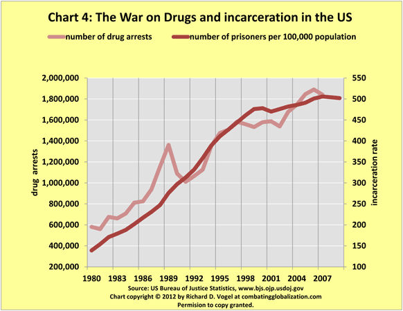 In many Latin American countries, sentences of up to 25 years can be given for low-level and nonviolent drug crimes, worsening conditions in often overcrowded prisons. While a significant number of high-level government officials have advocated for human rights, many countries seem to have gone backwards and instead incarcerated even more then they had in the first place. Colombia, for example, incarcerated 6,000 people in the year 2000, but went up to 23,000 people in the year 2014.