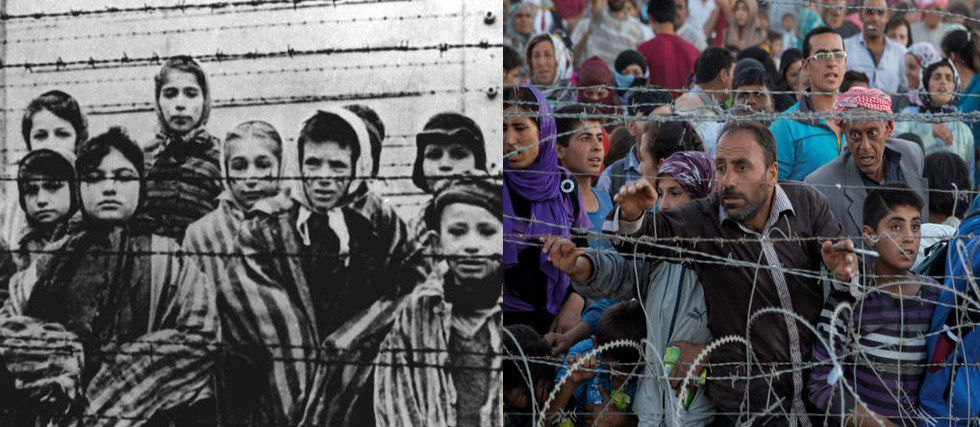 Only that one was taken in 1945 and the other in 2016. We haven't learned from our mistakes. We keep treating people like they aren't human beings because we don't like where they come from, their way of thinking, their religion or their ideals. Because we are scared of them. Western society tends to not care about anything that doesn't involve them personally--our way of thinking is "it doesn't affect me, it isn't important". But guess what? It is important. People are people, no matter if they're Christian, Muslim, Jewish or atheists. No matter the color of their skin. And no matter their sexuality.