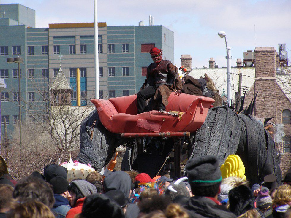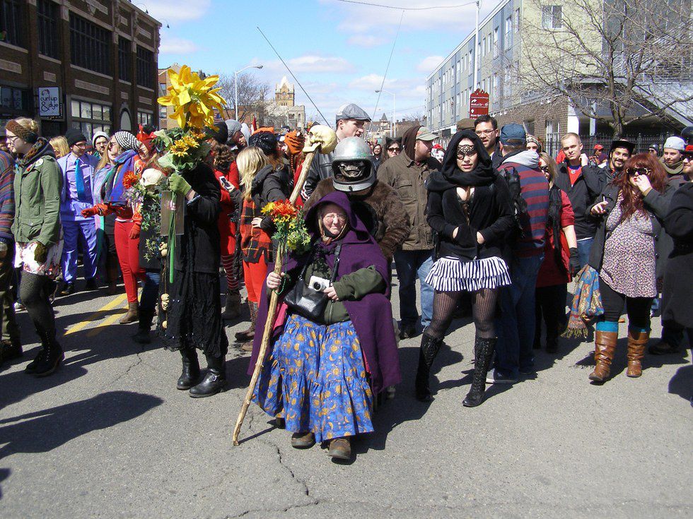 At the Marche Du Nain Rouge, Detroiters come together to "celebrate liberation from the Nain, a new beginning, and whatever is good and working in the city in a spring festival for the good and betterment of the city of Detroit. " Naturally, this provokes The Nain, so attendants are encouraged to dress in disguise so that he cannot exact his revenge.