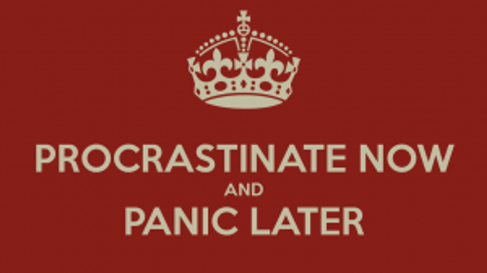And there’s always the good old college standby: procrastination. Why do today what you can put off until tomorrow? It sounds stupid, and sometimes it is, because many times doing a good job requires a lot of time when you’re not tired and cranky (*ahem* 4 a.m. essay completion). And according to Hofstadter’s Law, “It always takes longer than you expect, even when you take into account Hofstadter’s Law.” But there is also Parkinson’s Law: “Work expands to fill the time allotted for its completion.” If you wait until the last minute, it should only take a minute to do.