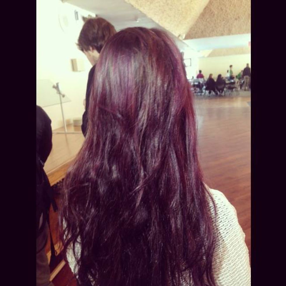 2015- Long, dark brown, purple ombre: I was in the first semester of college, away from home in PA, and incredibly depressed