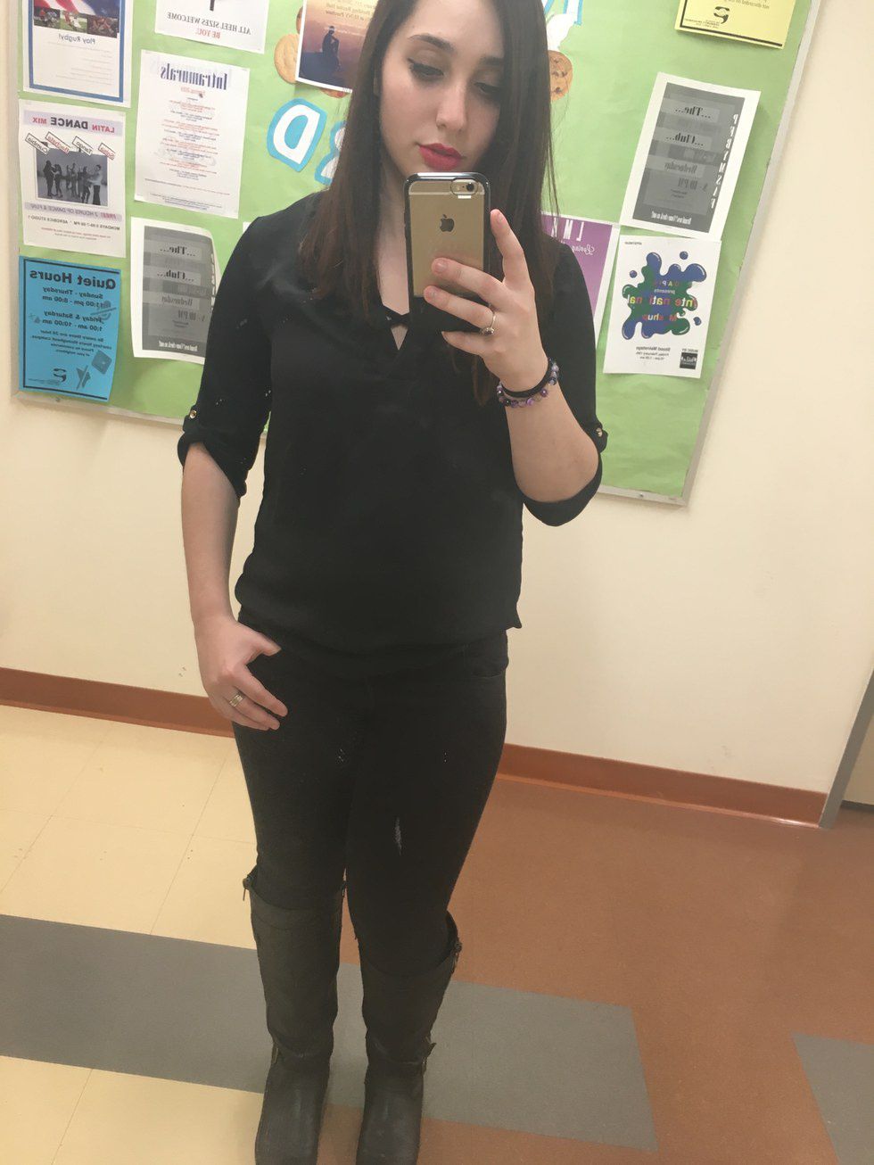 I went back to dark brown and long, which is how it stayed for the rest of junior and senior year per my mother's request during college interviews and tours. See below