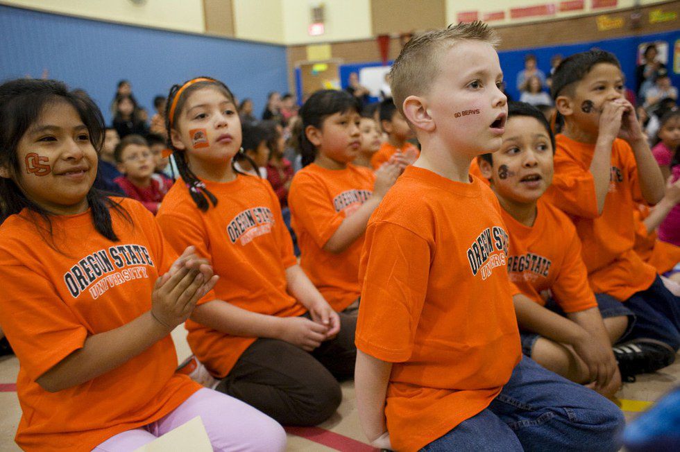 My school is preschool through seniors, and every single grade looks up to the "cool" kids in high school. They hang all over you and think that you're the greatest thing ever. Sometimes they talk you up so much that you actually think you are.