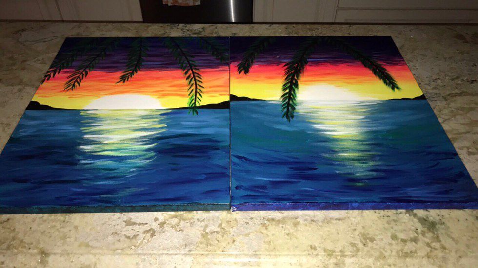 Everyone has that one hobby that they are passionate about, that can lift them from any bad mood and set a fire in their heart. To me, that's painting canvases. I love the opportunity and creativity that a blank canvas can possess. And so when I got the chance to attend one of the painting with wine classes, I was overjoyed with excitement. I was going to paint what it seemed like a simple sunset with a crowd of 50+ but it was so much more than that...