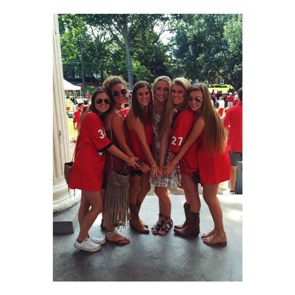 UGA football jerseys double as cute, sporty dresses for game day. If you're tall (like me) and want to avoid a wardrobe malfunction, rock it as a shirt. Go Dawgs!