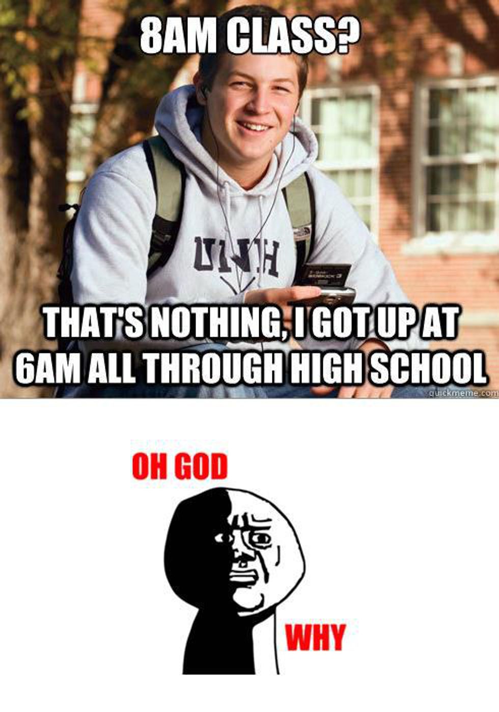 This is a mistake I made in my very first semester. It’s easy to think, “Hey I had to get up earlier than that in high school, so 8 a.m. will really be like sleeping in.” But college is whole different ball game and is filled with many various obstacles that will prevent you from getting decent sleep for those lovely 8 a.m.’s.