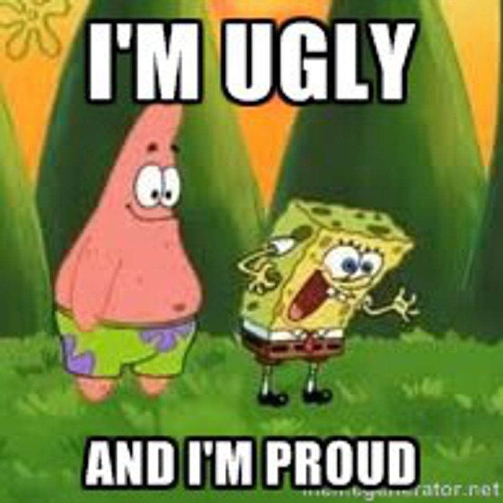Here is another, better example that I’m sure most of you lovely readers will be familiar with: Do you remember that SpongeBob episode where SpongeBob believes himself to be ugly? Even though he clearly struggles with it and isn’t actually as ugly as he was thinking (because it was *spoiler* actually just nasty, bad breath) and is superbly happy when he finds out it’s only his vile breath, the classic scene with him and Patrick on his roof chanting “I’m ugly and I’m proud!” is actually an important message.