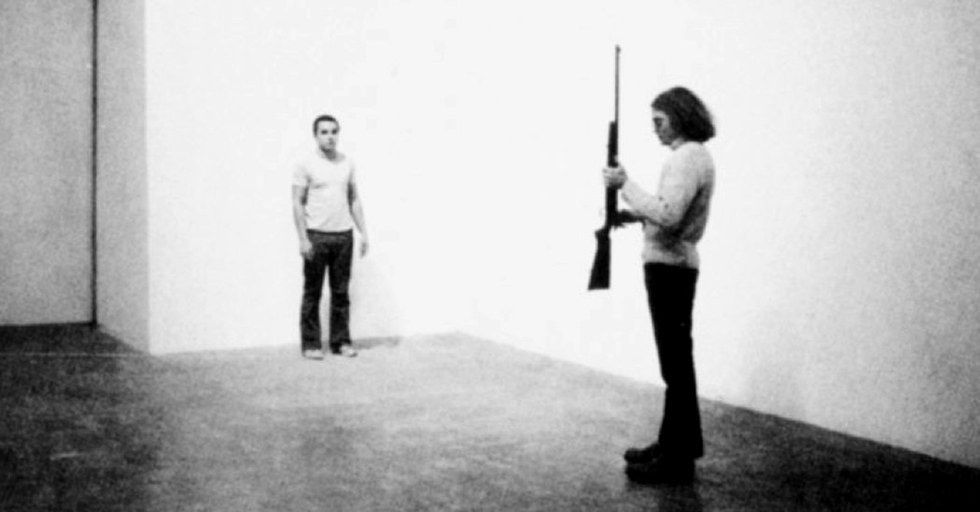 Art, especially contemporary art, is meant to move beyond the visual realm and into the experiential, hence its multiplicity of forms. Performance pieces especially need to be viewed in person. Watching a video of Chris Burden's "Shoot" (above) is not experienced in the same way as actually being in that gallery space and witnessing a marksman shoot Burden. Additionally, the audience permitted the shooting because they were in a gallery space. Experiencing this performance piece in person, one would be shell-shocked and in disbelief. Watching the video of the performance does not have that same effect.