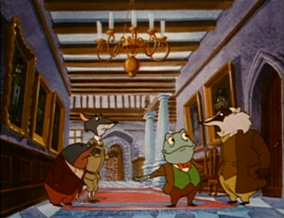 This version begins with a live-action English family enjoying a day on the river, but quickly switches to animation as they begin talking about the animal's adventures. The style of artwork is like a painting, and faces have an oddly hyper-realistic quality to them. This made Badger highly intimidating, and the final battle scene more intense. This is the version to turn to if you'd like a few scenes not represented anywhere else, such as Rat's sudden travel fever and the encounter with the piper at the gates of dawn.