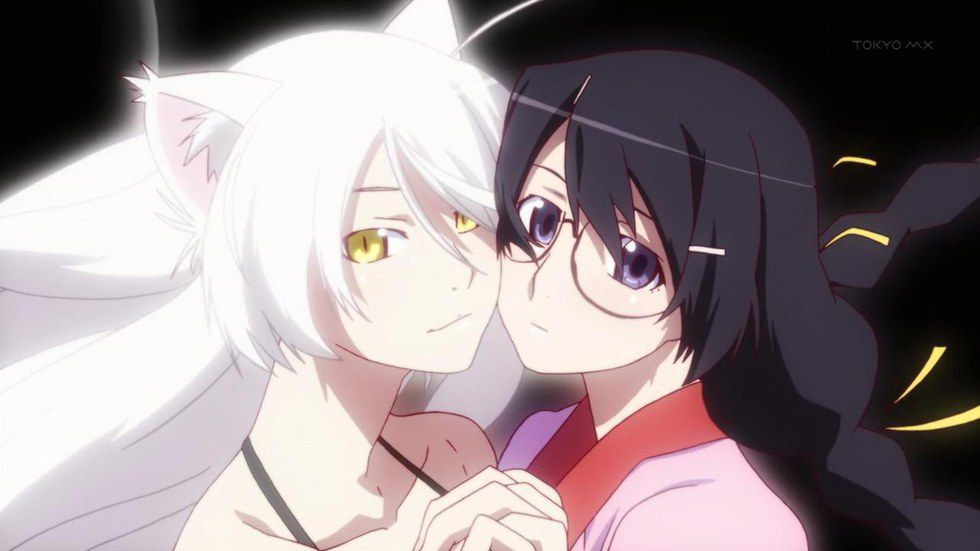 These are the potential problems that the "Monogatari" anime series faces: It’s confusing, requires your full attention, covers complex philosophical issues, contains gory scenes, and has fan service (if you consider that a problem). However, if that still doesn’t persuade you, then watch this video of Black Hanekawa, the nekomimi, saying a tongue twister!