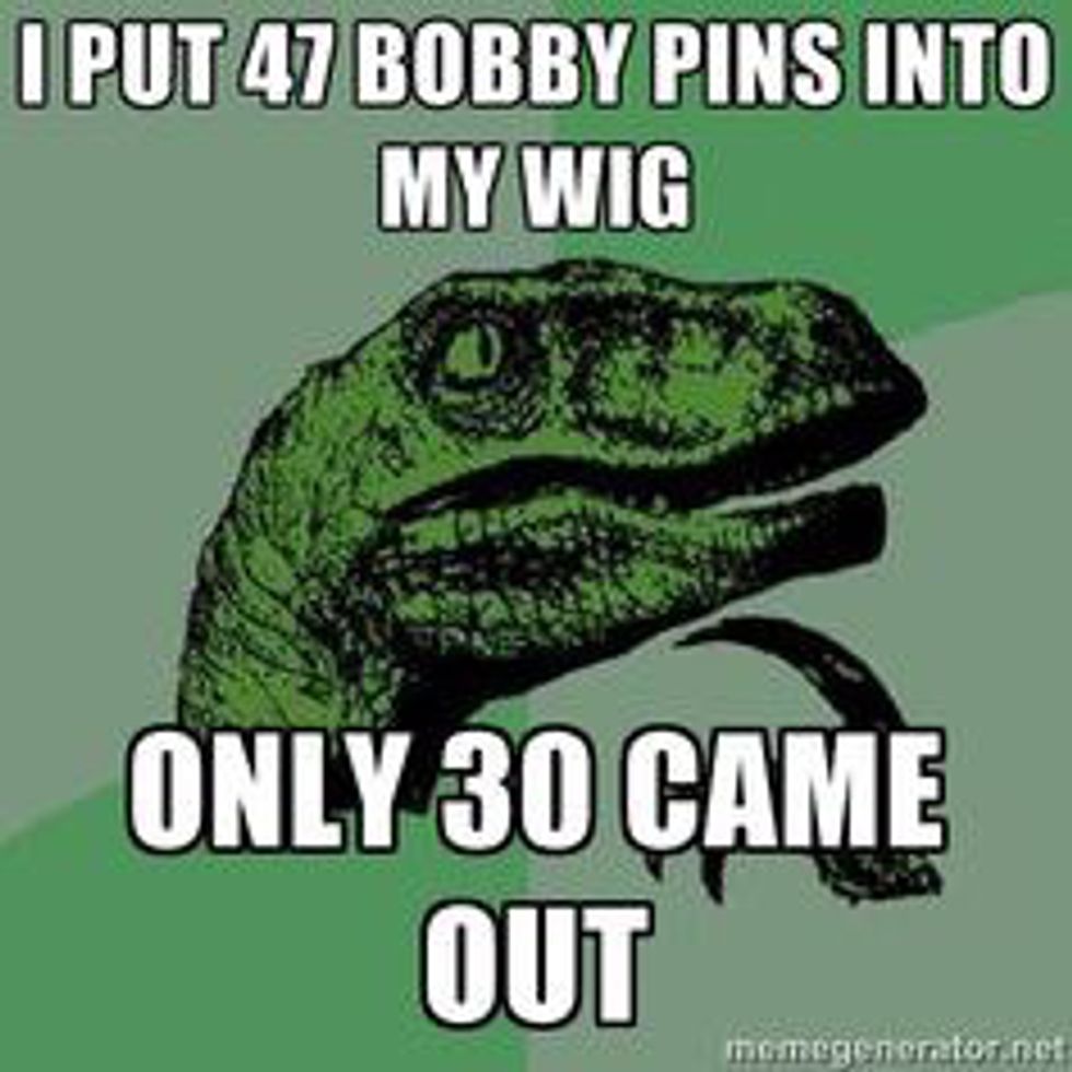Whether they have fallen out on the stage, are lost in your hair, or stuck in your wig you can never have enough. The wig has got to stay on some how so another trip to Sally's Beauty shop it is. Of course after purchasing a whole new pack you start to find them showing up in the most random places