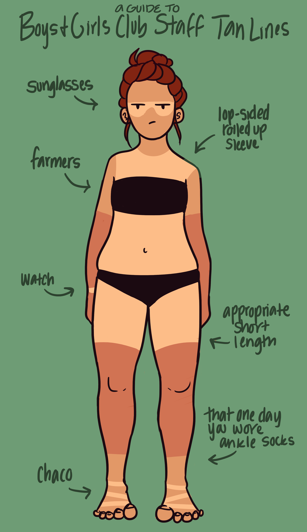 In the hopes of having not as awful of tan lines, you roll up your shorts a bit, take off your sunglasses, and roll up your sleeves to try to even out your tan lines.