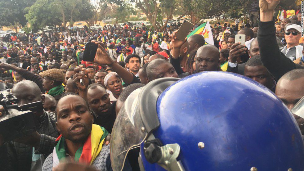The story took another turn on Tuesday the 12th, when Evan Mawarire was arrested by the Zimbabwean Police and charged with inciting violence. In Zimbabwe, protesting is legal. However, inciting violence is not. Much of Zimbabwe was outraged by this arrest, especially considering that Mawarire had actively advocated for protesters to be peaceful on more than one occasion, meaning that charges of inciting violence seemed to have no basis in reality. The Zimbabwean prosecutors must have shared this sentiment, because when Mawarire arrived in court the next day, his charges had changed from ‘inciting violence’ to ‘trying to overthrow the government,’ which carries a 20-year jail sentence if found guilty. Hundreds of Mawarire supporters gathered outside the courthouse and peacefully protested.