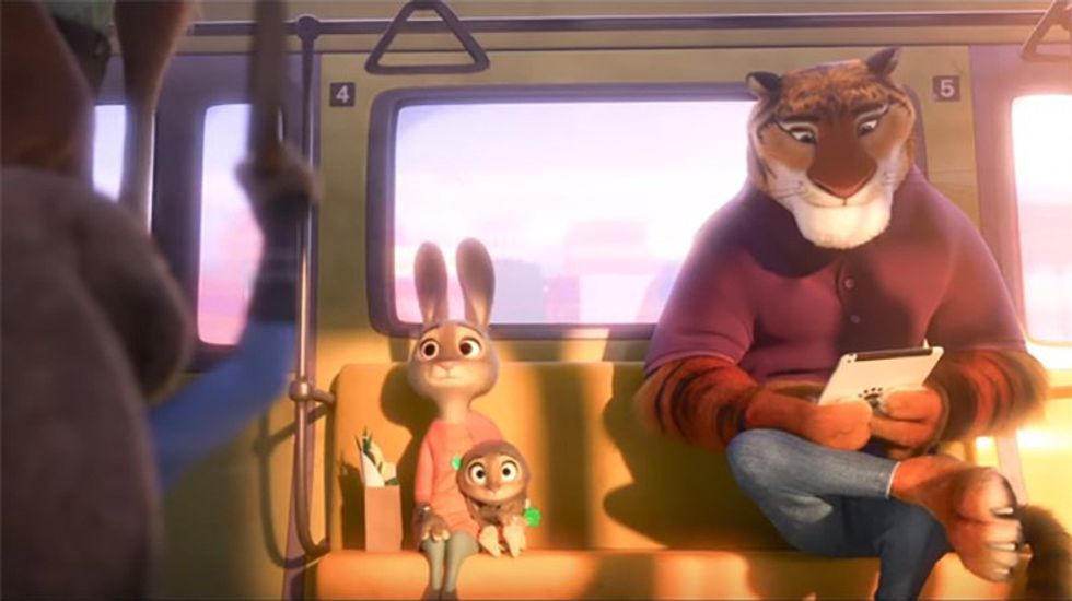 When predators start to revert to their savage behavior and attack prey, there is mass panic and hatred toward the predator sub-genre or (race) animal. At the height of the racial tension against the predator minorities, a bunny mother pulls her child away from a predator on the train. In another scene, a predator protesting gets harassed as she yells back that she is from the Sahara square and is not a primeval beast. These are strikingly familiar moments in our society. I've personally witnessed countless numbers of times in public where a person would move themselves or their group away from another for seemingly little to no reason besides a different appearance.