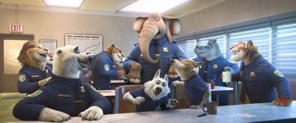 However entertaining the trailers are, they are a bit misleading, failing to hint at any of the deeper themes of the film. The "children's" film, with anthropomorphic animals, looks like it'll be a comedy. A stereotypical pairing of optimistic, hopeful and wide-eyed bunny cop (Judy Hopps) and sly con artist fox (Nick Wilde) are forced to work together to solve a crime. It is indeed a comedy, but it's also a film about racism and police treatment of minorities.