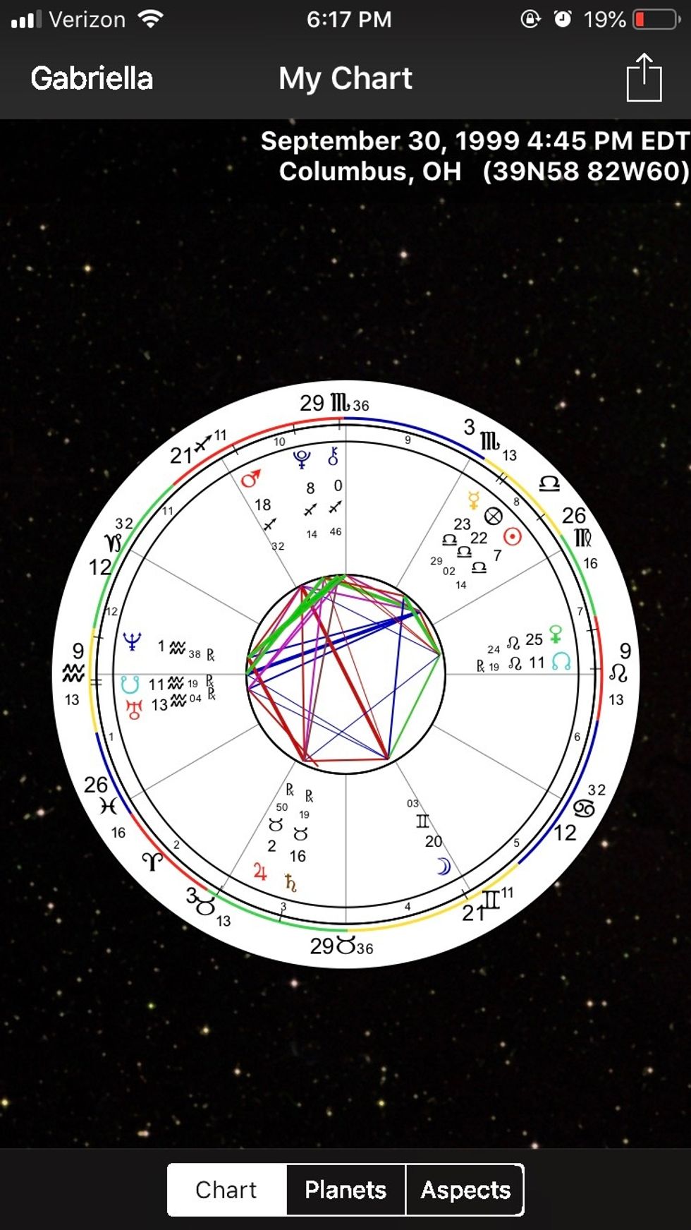 Co-Star is the best app out there for looking at natal charts. It sets it up in a very straight-forward and easy to read way. It also offers explanations for what each planet represents, and what it means to have a specific sign in each planet. You can add friends on this app and analyze their natal charts, and get a general reading on how compatible you two are. Co-Star also sends you a daily notification, reminding you to read your horoscope for the day. The horoscopes on this app are a little weak, but fun and inspirational none the less.