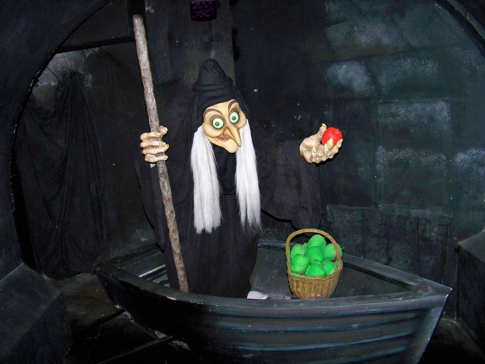 Another dark ride, Snow White's Scary Adventures was originally constructed in Disneyland and opened in 1955 under the name "Snow White and Her Adventures." The ride intended guests to to experience Snow White's story from her point of view, which is why Snow White was not seen in her own ride. The Walt Disney World version opened on Magic Kingdom's opening day and was known to be more frightening than the original. This version also did not include Snow White, but the Witch was seen seven times, and many guests found the ending of the ride terrifying. In 1983, the version in Disneyland underwent some changes, including adding one image of Snow White herself. In 2004, Magic Kingdom's version of the ride also underwent some changes to make it less scary. The Magic Kingdom ride closed for good in 2012 and was replaced by Princess Fairytale Hall. Luckily, the remodeled ride can still be found in Disneyland, and guests at Magic Kingdom can still enjoy seeing Snow White while riding the Seven Dwarfs Mine Train.