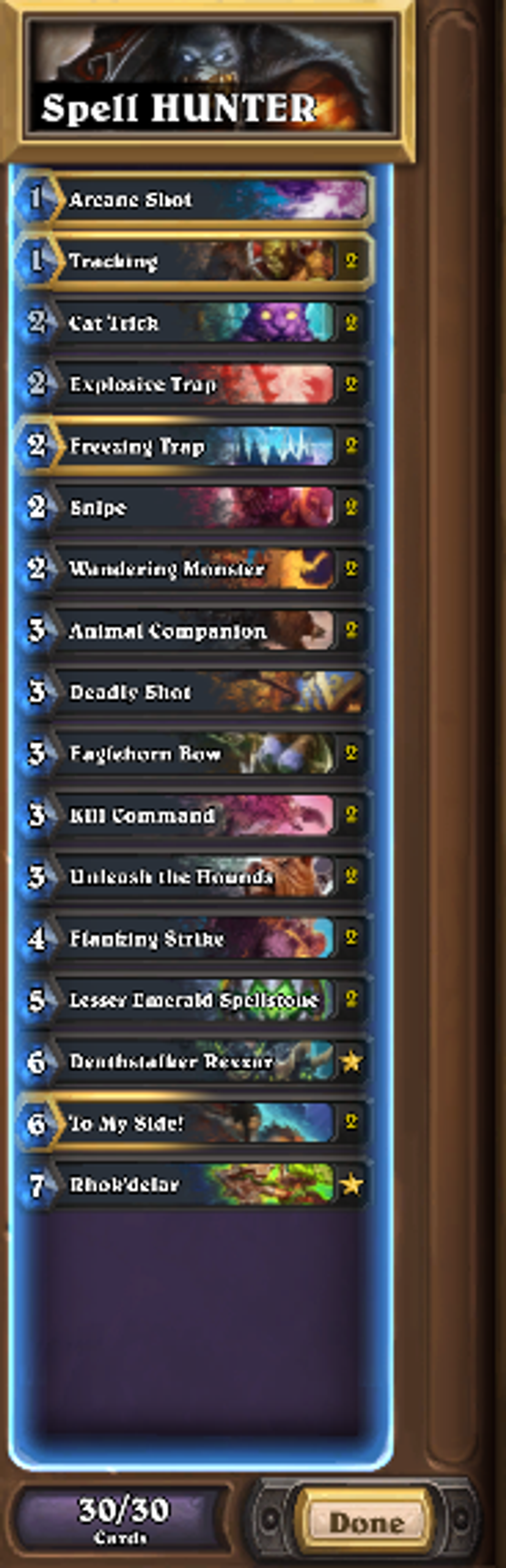 The deck is something very new for Hunter and to be blunt, I think it's trash. I spent more or less 4 k dust to craft some of the cards and I am particularly salty about my expenditure. It's a fun deck, but not one that's good in my opinion.
