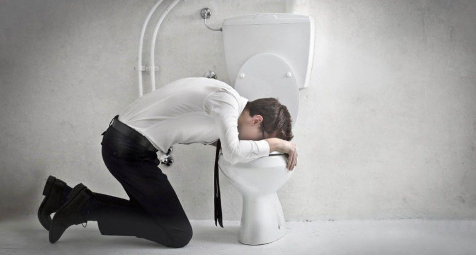 This would only work if the absorption rate of alcohol was slow. But, that not being the case, throwing up is not generally an advised solution to getting sober. Throwing up may make you feel less queasy, but you will still be drunk. And if you do throw up, please clean up after yourself and be sure you check your shoes to ensure you aren't dragging vomit wherever you go.