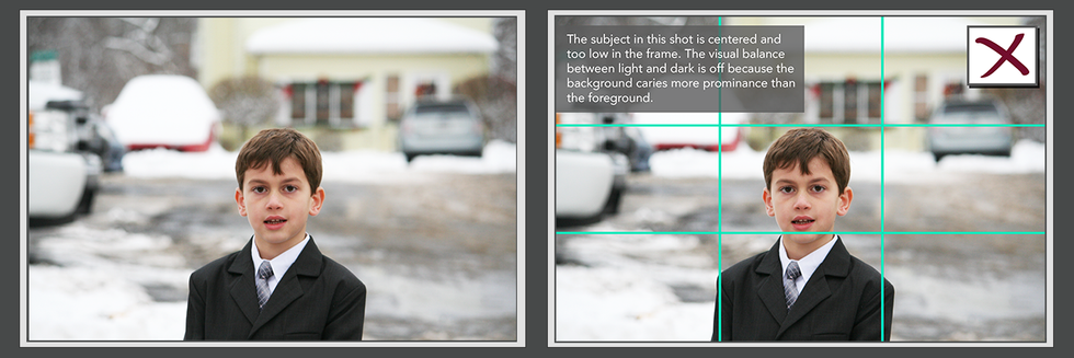 Remember the rule of thirds in photography. Avoid centering when possible, because it comes off as unnatural and unrealistic. Having the main focus be to the side is much better in most situations.