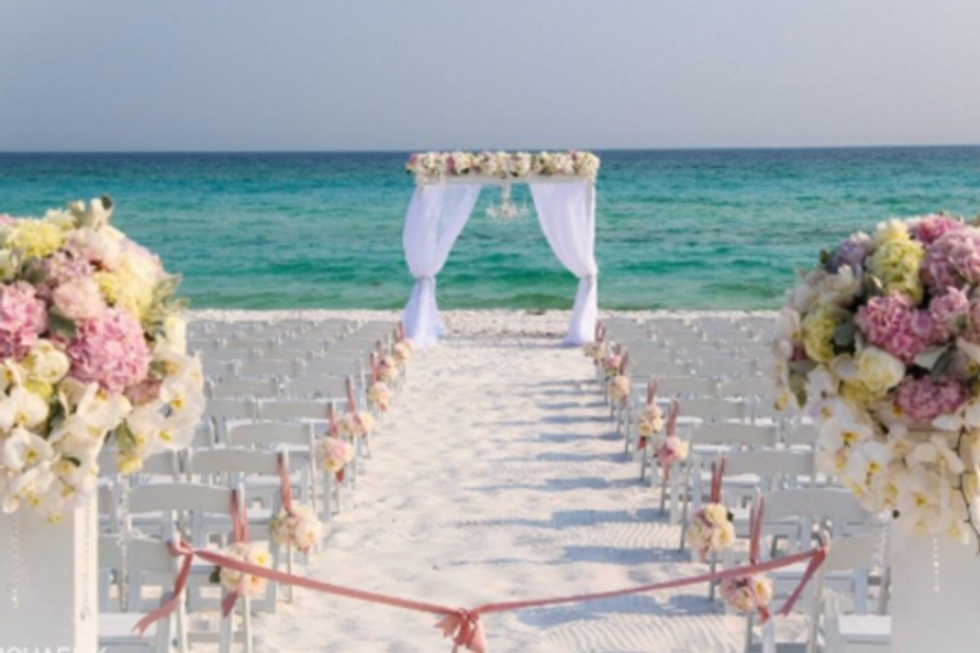 This theme is so romantic. Party favors tend to be messages in bottles, flip-flops are provided for guests to walk on the sand, candles line the aisle, and guests can dress more casually.