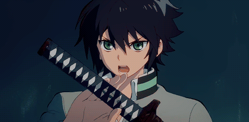 In the year 2012, a lethal "human-made" virus swept across the Earth, killing everyone over the age of thirteen. Then, in the midst of death and chaos, the vampires came out of hiding and took control of what was left. The main character (featured in the gif), Yuichiro "Yu" and the other members of the Hyakuya orphanage, quietly hid until the vampires discovered them, taking then all into "safety", at the cost of subjugating them for their blood. One night, Yu and his closest friend, Mikaela "Mika,"decide to take the other members of the orphanage and run away. However, in the home stretch, a vampire catches and slaughters them all, besides Yu, who manages to get away. Yu is found by the Moon Demon Company, an extermination unit of the Japanese Imperial Demon Army. The army's cause is to wipe out all of the vampires and take back their territory. To avenge his family's death, Yu vows to join the extermination unit, so that he can take revenge.