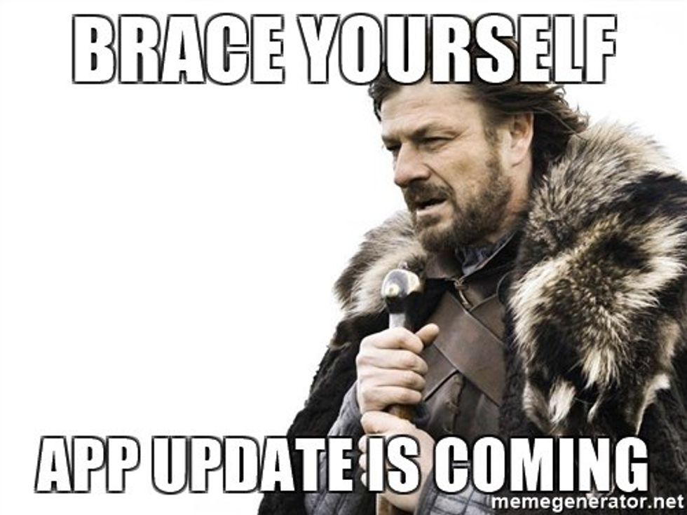 Updates that change how the smartphone app looks in general (Ahem! Instagram. *cough *cough) or the user interface when you open it (Snapchat. *cough *cough). I don’t want to be confused the next time I open any of my favorite apps that I use on a daily basis. What is the send button? How do I see my recent snaps? Please app developers, do not confuse us anymore. Sincerely, the consumer.