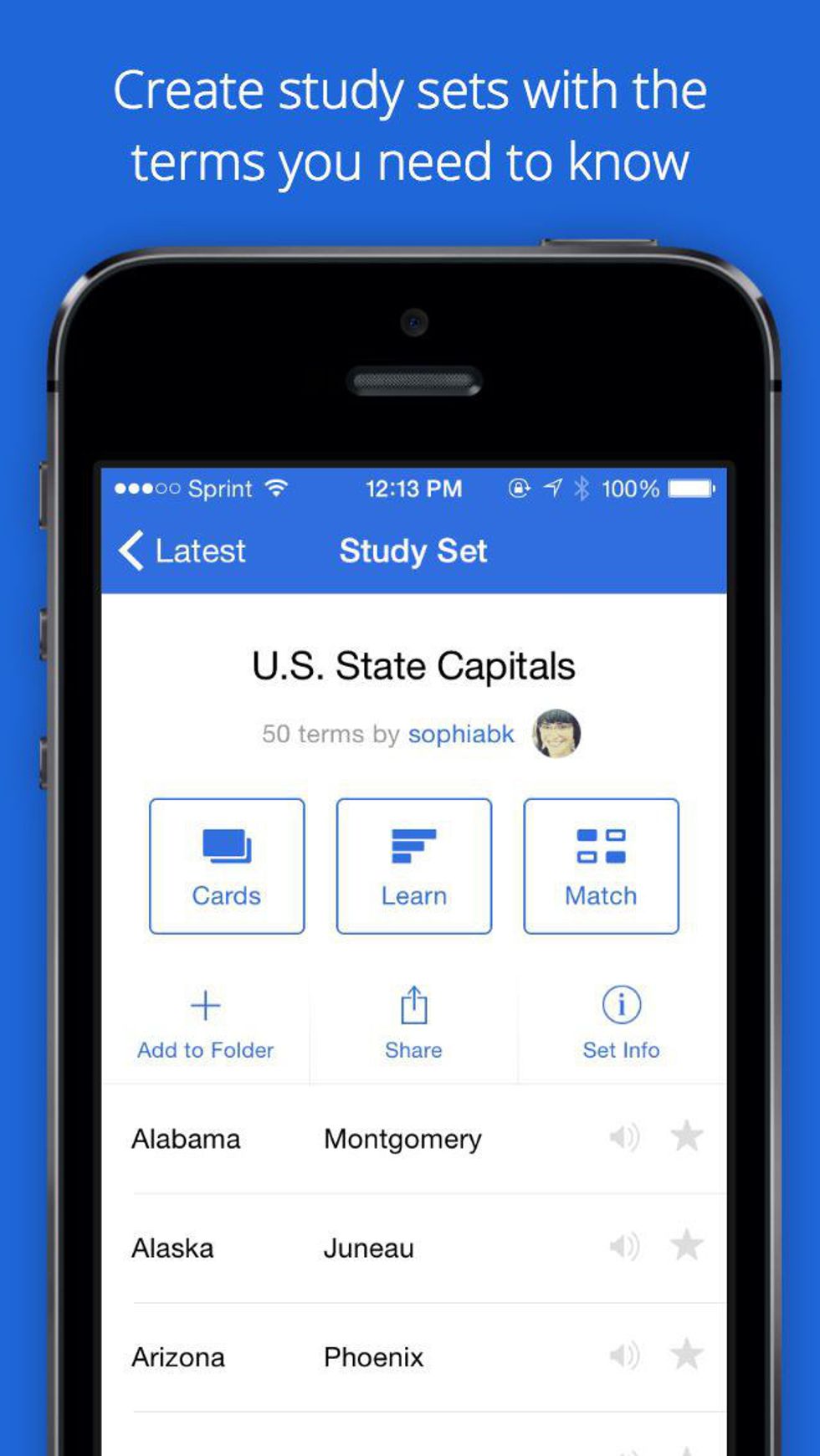 Quizlet lets you study your test terms, take practice quizzes, view flashcards created by others, and so much more, right in the palm of your hand. It's a stinking lifesaver.