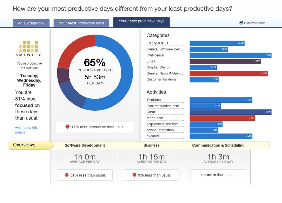 If you cannot handle being completely blocked from Facebook, use RescueTime. RescueTime tracks time spent on social networks, mail, and other apps and identifies which one is the biggest distraction. It will send you alerts when you have spent too much time scrolling through news feeds and remind you to get back to work.