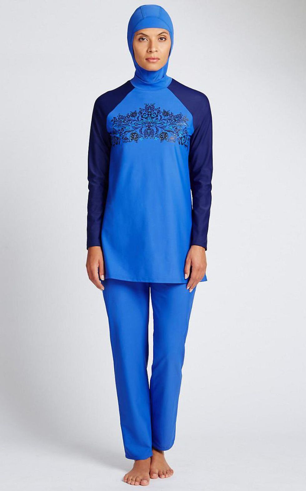 Recently, police officers in Nice, France, forced a woman to remove her burkini on the beach following a burkini ban in 30 towns across France. Authorities claimed that the bans were enacted for security concerns after recent terrorist attacks, but the forcing-a-woman-to-remove-her-clothing thing sparked outrage both online and on the streets. But what is a burkini, you ask? I'll let Marks and Spencer's burkini line show you: