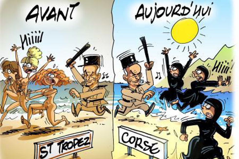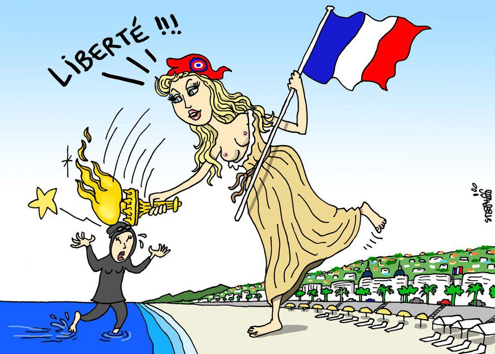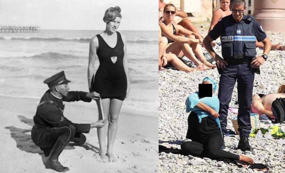 Basically, it's a swimsuit designed to cover up almost the whole body, often worn by Muslim women but also sometimes by women who just want to avoid being sunburned. So how does this quintessentially-wetsuit piece of clothing invoke such controversy? Here are ten images (okay, nine images + 1 GIF) that just may answer that question: