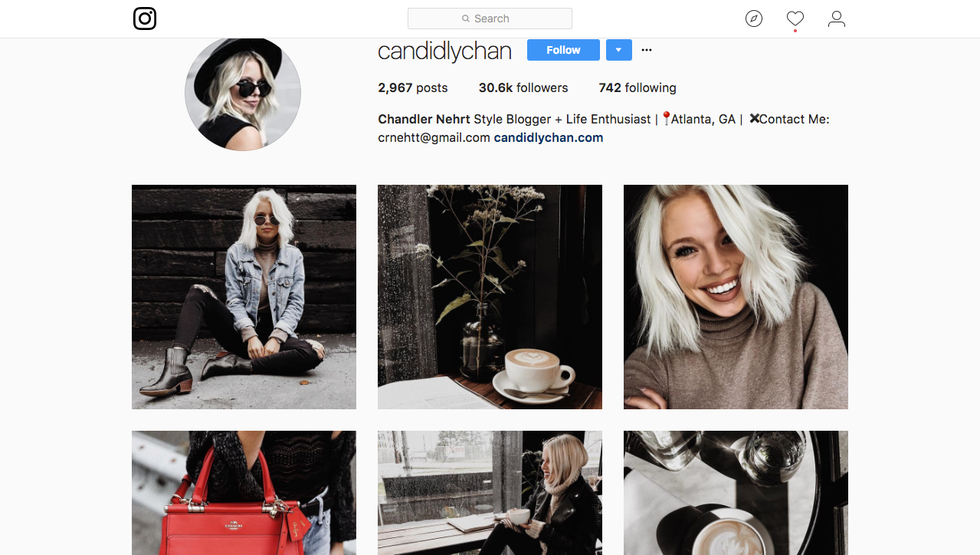 A local from here in Atlanta, Chandler Nehrt is quickly becoming my favorite IG girl. Frequents the local coffee shops around town and actually helped me find an awesome record store based off of her photos. Plus her darker-themed feed is right up my alley.